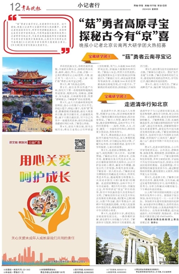 “菇”勇者云南寻宝记,走进清华行知北京。这个暑假,晚报小记者两大宝藏研学团火热招募中。首席记者现场指导写作,研学导师讲解经典知识。参团学生在夏令营中表现优良,可获得由报社提供的优秀小记者研学实践证书,可在青岛晚报报纸和官方新媒体平台夏令营专版照片集体亮相,认真交作文的学生还可在晚报《小记者》夏令营专版图文报道联合署名,《作文课》夏令营专版独立发表作文。