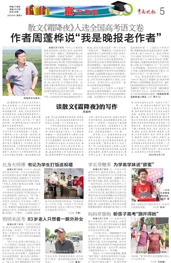 本报6月7日讯 在家长们的眼里,孩子永远都是孩子,他们希望见证孩子的每一次成长。7日上午9时,在青岛二中考点外,考生进场后家长们基本都“撤”了,一位老人则有些执着地向门口张望。
