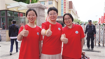 青岛三十九中“明星老师”高宇红(左二)是考生心中的“定海神针”。吴忠林 摄