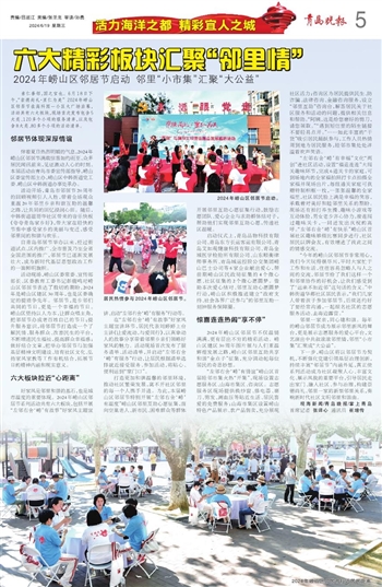 2024年崂山区邻居节不仅温情满满,更有层出不穷的精彩活动。崂山区建区30周年图片展与人们重温辉煌发展之路,崂山区邻里互助共享和谐“金点子”征集,充分调动起每位居民的奇思妙想。