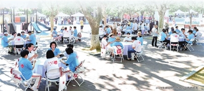 “左邻右舍‘崂’有幸福”文化“两创”进社区活动,设置“福运连连”大闯关趣味环节,完成6道关卡的家庭,可到场地内的全家福拍照打卡点拍摄全家福并现场出片,每组通关家庭可获赠特制相框一枚,一张张温馨的全家福里,社区居民脸上满是幸福的笑容,承载着对美好和睦邻里关系的期盼。现场还有拍打养生操、趣味小游戏等互动体验,男女老少齐心协力,接连闯过趣味关卡,一同迸发出庆祝的高呼。“左邻右舍‘崂’有快乐”崂山区首届社区趣味够级比赛同步进行,社区居民以牌会友,有效增进了彼此之间的情感交流。