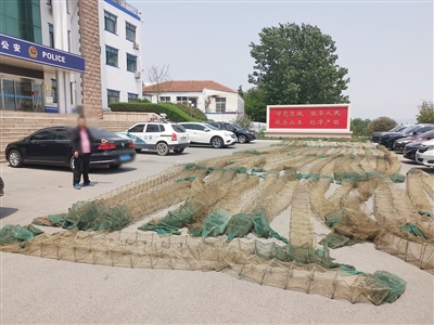 红岛派出所民警查获的地笼网。