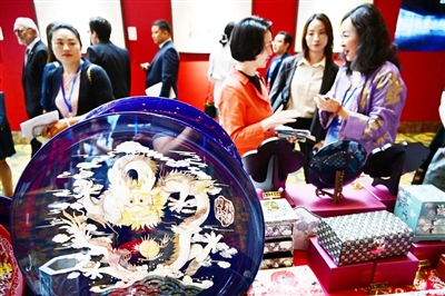 6月19日,与会者在亚洲文化遗产保护联盟理事会第二次会议的非遗展区参观。 新华社发
