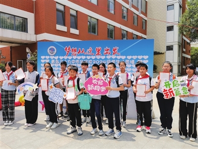 本报6月23日讯 6月22日,青岛三十九中市北分校迎来了又一批新生,2024级306名初一新生怀揣着梦想与期待走进校园报到。学校精心策划布置“成功红毯”“梦想拱门”“心愿墙”等,用满满仪式感帮助新生更好地了解学校环境、文化氛围和规章制度,让学生为接下来的三年初中生活做好充足准备。
