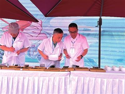 6月22日上午10时许,记者在斗茶大赛的现场看见,绿茶、红茶、白茶、黑茶、青茶、茉莉花茶等100多种样茶齐聚一堂,接受评审专家们的评鉴。专家们通过赏外形、闻香气、观汤色、品滋味、看叶底等比赛流程操作,严格按照国家茶叶审评标准,对参赛茶样进行全方位的对比评审。经过审评组专家严格评判,最终共决出金奖茶王12名、一等奖24名、优秀奖30名。
