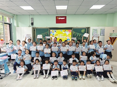 青岛立新小学一二年级学生闯关成功后获得了荣誉证书。