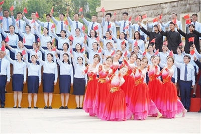 本报7月3日讯 日前,青岛二中举行“盛世繁华颂党恩 共赴山海绘新愿”庆祝中国共产党成立103周年主题党日活动。情景朗诵、合唱、舞蹈……二中师生以多样形式为党庆生。