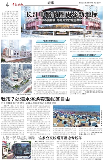 本报7月4日讯 海水浴场是城市的窗口,代表着城市的形象,反映着城市的旅游品质,海水浴场也是市民节假日休闲放松的好去处。去年以来,我市持续开展海水浴场环境品质整治行动,规范经营秩序,升级服务业态,夯实安全基础,9处海水浴场环境品质和服务水平均有显著提升。