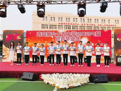 青岛第六十五中学为优秀毕业生颁发荣誉证书。于娜 摄