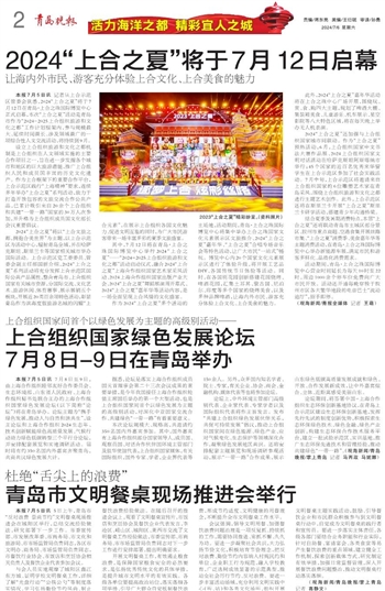 本报7月5日讯 记者从上合示范区管委会获悉,2024“上合之夏”将于7月12日在青岛·上合之珠国际博览中心正式启幕,本次“上合之夏”活动是青岛市作为“2024-2025上合组织旅游和文化之都”工作计划框架内,参与规模最大、延续时间最长、涉及领域最广的一项综合性人文交流活动,将持续到9月。