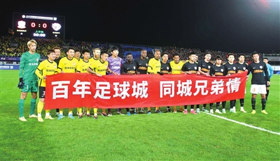 “百年足球城,同城兄弟情!”今年3月底,在西海岸大学城体育场,一幅在赛前被双方球员拉起的横幅让球迷们至今难忘。因为那场比赛标志着青岛成为继上海、大连、广州、天津、北京、武汉之后,中超联赛历史上第七座进行过“同城德比”的城市。最终,青岛西海岸队在主场赢下首场“德比”战,也取得了在中超的首场胜利。