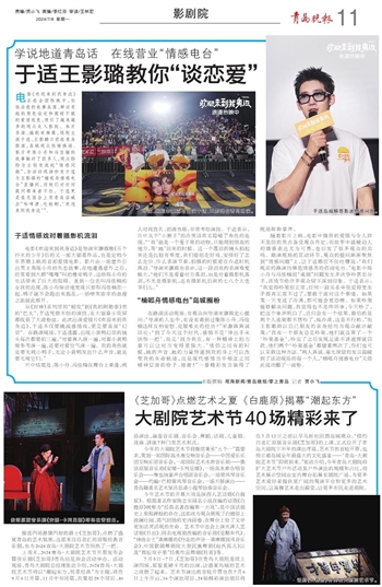上周末,2024青岛·大剧院艺术节开票发布会暨音乐剧《芝加哥》青岛站见面会活动举办。活动现场,青岛大剧院总经理张洁介绍,2024青岛·大剧院艺术节将以“潮起东方,传承经典”为主题,将在9月6日开幕,11月中旬闭幕,共策划28个项目、40场演出,涵盖音乐剧、音乐会、舞蹈、话剧、儿童剧、戏曲、讲座7种门类艺术形式。