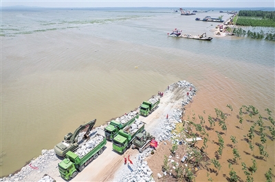 物资装备调度方面,现场计划从湖南长沙、汨罗以及湖北石首等地调度21.71万吨块石物料用于封堵决口,目前已经到达3.99万吨,余下物料将在7日陆续运抵。打包砂卵石1500吨、碎石1500吨和5200个钢丝石笼已经全部到位。此外,用于封堵决口的6个JSCX-80蜂巢式组合沉箱正在运输,将于7日下午抵达。