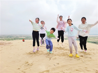 第二天,前往“中华第一龙”出土地——玉龙沙湖旅游区,这里有八百里瀚海,可直观感受“大漠孤烟直,长河落日圆”,小记者们体验了骑骆驼、百米沙坡滑沙和露天温泉,锻炼了体力和毅力,收获了积极迎接挑战的信心和智慧。