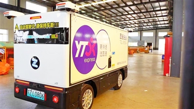 在圆通速递(即墨总部)内,九识智能山东区域副总经理付玉欣检验了准备出发的无人驾驶快递车的性能。“这批‘无人车’设计时速可达40公里/时,满电状态下续航可达180公里,车辆配备了雷达、摄像头等传感器设备,能够自动识别红绿灯、开启转向灯、礼让行人和避让障碍物,确保行驶安全。”付玉欣边介绍边操作演示,在前方有人的情况下,无人驾驶快递车能够及时停住、停稳。