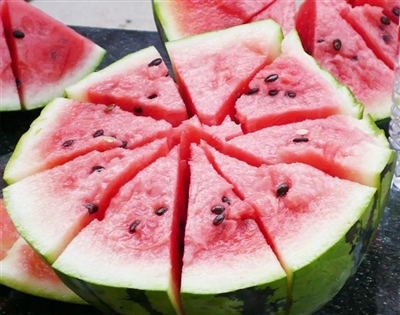 脆瓤汁多、细腻爽口的平度市“明村西瓜”。