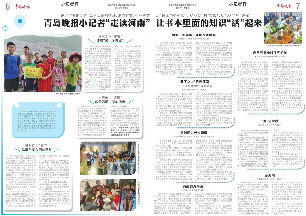 这个暑假,我和妈妈一起跟着晚报小记者研学营前往河南,五天的研学让我受益匪浅。