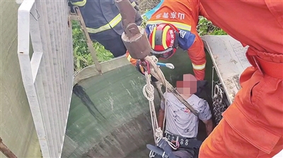 本报7月16日讯 7月15日早7时50分许,胶州市消防救援局接到报警称,胶州市胶东街道一工业园内,有人被困在排污井里,请求救援。救援人员到场后发现,一名工人在5米多深的污水井下作业时,晕倒在平台上,面部受伤无法动弹。两名救援人员评估现场救援环境后,穿戴好空呼器等个人防护装备,进入井下施救。