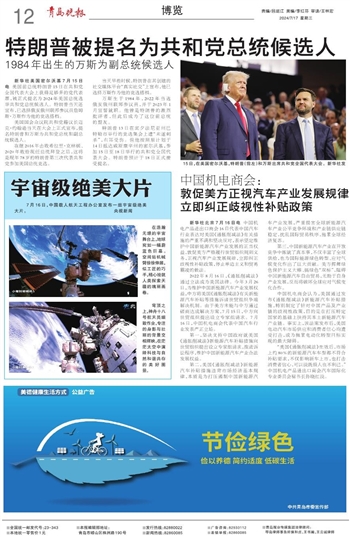 新华社美国密尔沃基7月15日电 美国前总统特朗普15日在共和党全国代表大会上获得足够多的党代表票,被正式提名为2024年美国总统选举共和党总统候选人。特朗普当天还宣布,已选择俄亥俄州联邦参议员詹姆斯·万斯作为他的竞选搭档。