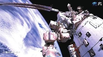 穹顶之上,神舟十八号航天员细致作业,专注的身影与壮丽的背景交相辉映,在茫茫太空中演绎科技与自然和谐共存的美好图景。