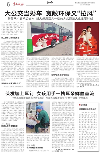 7月15日晚10时许,在青岛游玩了一天的小张发现头发缠在了右耳耳廓软骨处的耳钉上。她像平时一样解绑耳钉上的头发,不料一不小心撕脱了右耳的耳廓软骨,右耳出现了不规则的撕裂伤和小裂口,顿时鲜血直流。小张迅速前往附近医院的耳鼻喉科就诊,得知治疗后右耳可能会留下如“蜈蚣腿”样的瘢痕,这让她出现了退缩。作为外地游客,小张对青岛并不了解,她根据网友的推荐,第二天上午前往市立医院整形美容科,求助于专家董子迎。据介绍,接诊时小张的右耳廓上有大量血痂,伤口宽约1厘米、长约2厘米。董子迎主任团队立即给予局部清创、碘伏湿敷,防止受伤处感染,并开展急症查血。当天手术已排满,鉴于小张的情况较为严重,董子迎为其加急开展了手术治疗。