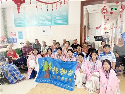 本报7月17日讯 近日,青岛第四十二中学学生梧桐树志愿者走进青岛市市北区红十字老年护理院,通过文艺表演的形式,丰富老人们的精神文化生活,传递对老年群体的关爱与尊重。