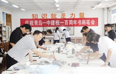 本报7月17日讯 今年10月,青岛一中将迎来百年校庆。近日,在距离百年校庆100天之际,学校举办了“百年校庆笔会”,邀请校友、知名书法家、画家共同参与,以笔墨书写对一中的深情厚意,共同绘就学校未来的美好蓝图。