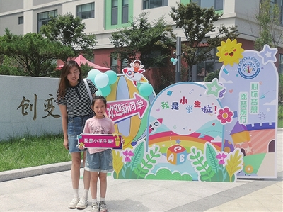 18日一早,青岛中央商务区实验学校(以下简称“中实校”)的校园便热闹了起来,老师们早早来到学校,为迎接本校第二届一年级新生开始忙碌。上午9时,一名名准小学生在家长的陪伴下走进学校,首先是与校训墙“打卡”合影。朝气蓬勃的“小萌新”举着写有美好祝福的手卡,与家长一起在摄影师的镜头下定格笑脸。中实校基础学部负责人刘璇介绍说,“我们的校训是‘养厚 博越 创变’,之所以设计打卡环节,是希望孩子们初入校就对学校精神有大概的了解。”学校精心设计的入学通知书也给学生和家长带来惊喜,卡片上是满满的中实校元素,有卡通版的教学楼、图书馆、校训墙和校门口的金桂树,以及校长王升文对新生们的寄语;通知书内页还预留了贴照片的地方,学校特别安排将新生入校打卡的照片现场打印、现场发放,从而让入学通知书成为每个孩子独一无二的“礼物”。