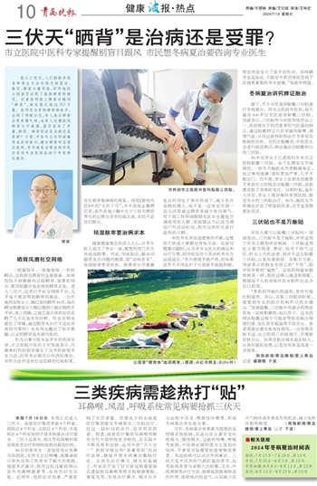 进入三伏天,人们纷纷寻找各种养生方法实现冬病夏治。最近,晒背火爆网络,有外地的公园甚至出现了集体晒背的情况。记者在网络上搜索关键词“晒背”,相关笔记超过357万篇。在网友分享的晒背体验中,出现了两极分化,有人表示晒背后更有精气神,也有人吐槽跟风晒背大汗淋漓,甚至造成了中暑、晒伤。晒背到底是治病还是受罪?日前,中医科主任邹波接受采访时表示,建议晒背切忌盲目跟风,有冬病夏治需求的市民应前往专业医院求助于专家辨证施治。