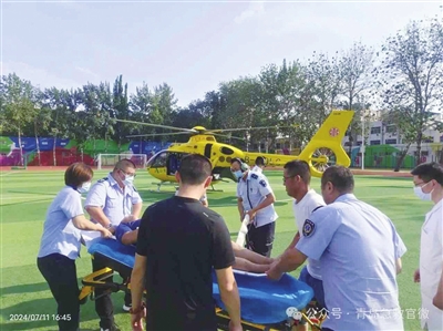 考虑到患者的病情危重、刻不容缓,青岛市急救中心迅速组织专家研判,决定立即启动航空医疗救援,派出医疗构型直升机执行此次急救任务。