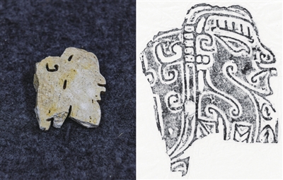 此次新出土的文物多为残片。“这些废料、半成品或许不如成品那么起眼,但都在给人们讲故事。”王方说,数千年前三星堆工匠已经掌握了娴熟的玉石料加工技艺。其中一件玉石上阳刻的侧身人像,头戴冠帽、橄榄形眼、高鼻梁、大嘴巴,生动的形象和精美的工艺与长江中游后石家河文化中的玉人(神)像如出一辙。“雕琢方式和后石家河玉人(神)像非常相似,造型、钻孔方式也一样,很可能是一个来自石家河的‘礼物’,说明长江上游和中游在数千年前就有交往交融。而无论是玉石侧身人像,还是三星堆立体的青铜人头像,都有中华文化早期祭祀属性,表明两者具有相似的宗教观念和文化渊源。”王方说。