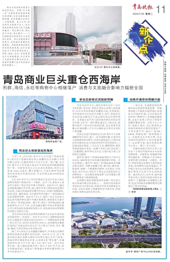 长江UP·青年中心项目的落地只是近年来各大商业品牌争相落户西海岸的一个缩影。去年7月,青岛本土商业巨头海信广场正式宣布落子西海岸。2023年3月,通过全球招募战略合作伙伴,海上嘉年华导入国际知名品牌合作运营,与海信东海商贸签署合作协议,共同打造集购物、休闲、娱乐、餐饮美食、文化教育等多功能于一体的国际名品直营奥特莱斯。2023年7月1日,海信广场正式宣布入驻运营西海岸新区嘉年华澳乐购商场,商场更名为嘉年华·海信广场VILLAGE。嘉年华·海信广场VILLAGE,建筑面积约14万平方米,由青岛融合嘉年华商业管理有限公司与青岛海信东海商贸有限公司、青岛海信商业管理股份有限公司联合打造。