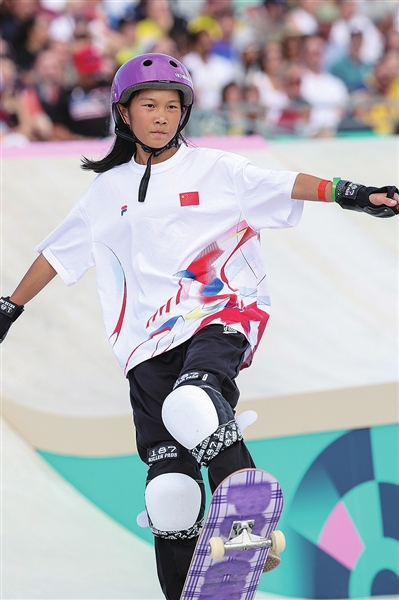 2021年4月,仅接受一年多业余训练的崔宸曦就斩获中国滑板精英赛专业女子组第二名;2022年,她在山东省运会中取得第三名;接触滑板才3年多的时间她就入选了国家队,2023年杭州亚运会滑板女子街式决赛上,当时年仅13岁的崔宸曦夺得金牌,成为中国亚运史上最年轻的个人项目冠军。那时她表示,争取参加巴黎奥运会,“冲击前几名”,如今终于实现了目标。