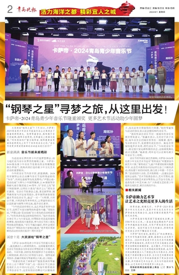音乐节的华丽乐章已然奏响,卡萨帝·2024青岛青少年文化艺术节还有“青报成长”年度原创书画艺术大展、“青报成长”儿童户外素质拓展实践嘉年华、社会艺术教育培训论坛研讨会三大板块活动,将在接下来的时间里,助力青少年圆一个艺术梦。“活动坚持大众性、艺术性相统一,注重社会价值和公益性。”艺术节组委会表示,艺术节期间,邀请国内外顶级艺术家齐聚青岛,以节会为主线、打造青岛青少年艺术IP,为广大热爱文艺的青少年提供交流技艺、展示自我的平台。