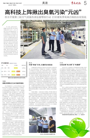 市生态环境综合行政执法支队支队长刘维铭表示,近年来随着大气污染防治工作的不断深入,细颗粒物、臭氧防控已成为青岛市秋冬季、夏秋季空气质量改善的核心环节,也是全市生态环境部门执法监管工作的一项重要任务,自“春雨”水污染防治监督帮扶行动之后,又组织开展“烈焰”臭氧污染防治监督帮扶行动,下一步将继续组织开展“秋风”“瑞雪”等监督帮扶行动,在风霜雪雨、严寒酷暑中,淬炼出一支特别能吃苦、特别能战斗、特别能奉献的生态环保铁军,坚决打赢打好蓝天、碧水、净土保卫战。