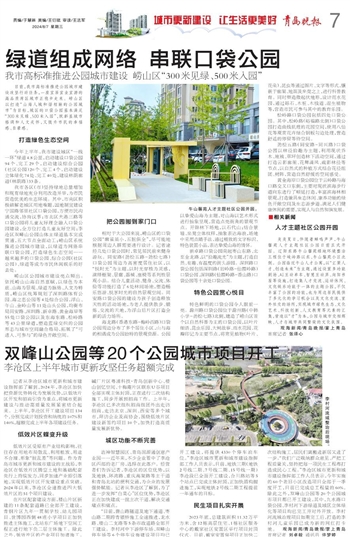 2023年底,总建筑面积11.32万平方米、含12栋高层住宅、1栋社区服务中心的戴家社区安置区举行项目封顶仪式。目前,戴家安置房项目正加快二次结构施工,居民们离搬进新居又进了一步。“我们广泛吸纳群众意见、严把工程质量关,坚持把每一项民生工程都打造成民心工程。”李沧区城市更新和城市建设指挥部工作人员表示,今年实施的60个老旧小区改造项目全部于一季度开工,目前已完成总工程量的60%。除此之外,双峰山公园等20个公园城市项目都已开工建设,其中,九水路口袋公园、李村河下游绿道及城区立体绿化等项目均已完工并对外开放。李村河流域治理项目如期完工后,打造的李村河儿童乐园已成为新的网红打卡地。 观海新闻/青岛晚报/掌上青岛 首席记者 刘卓毅 通讯员 许梦婷