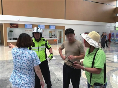 交警将李先生护送至医院。