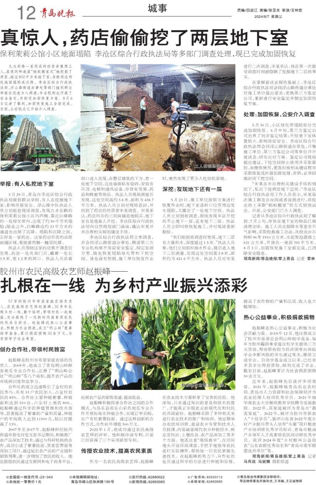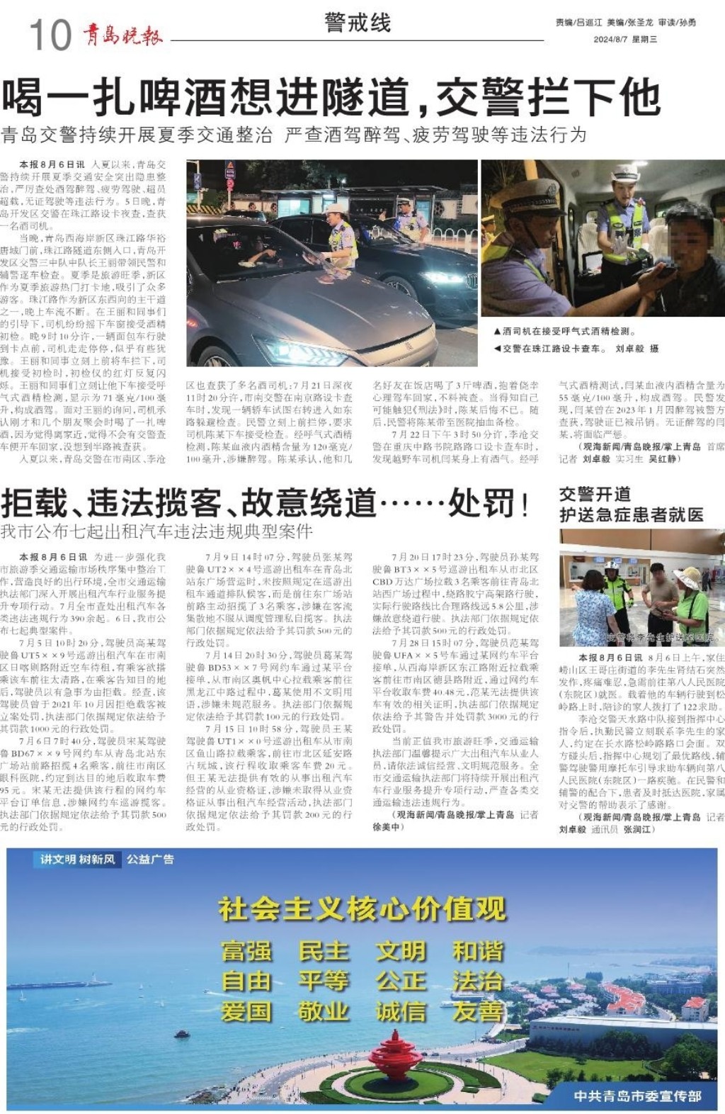 A01 头版 A02 走在前 挑大梁 奋力谱写中国式现代化山东篇章 A03 最美海岸行大型直播采访 A04 爱在七夕 A05 关注 A06 民生新闻 A07 城事更新建设 让生活更美好 A08 火热的一线 A09 城事 A10 警戒线 A11 文化新闻 A12 城事