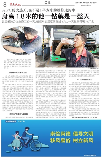虽然已经立秋,但最近几天,我市气温始终居高不下,加之频繁降雨,蒸煮模式切换增加了户外工作难度,公交崂山公司松岭路场站的修理工,在滚滚热浪中持续奋战,在一平方米左右的地沟里,用满身油污和汗水换来城市公交平安运行。