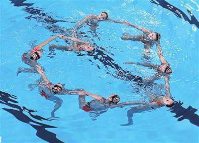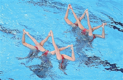花样游泳素有“水中芭蕾”之称。花样游泳集体项目有三套动作,长的三分多钟,短的两分半左右,运动员几乎有一大半的时间都在水下,每个队员都有自己的位置和角色,有“尖子”,有底座,有承上启下的中坚力量。