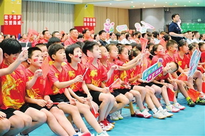 在陈梦的夺金之夜,陈梦(国科大)乒乓球特色学校的小球员们坐在了最前列。当“陈梦姐姐”夺冠后,一位小球员兴奋喊道:“陈梦姐姐太棒了,我也要像她一样成为世界冠军!”