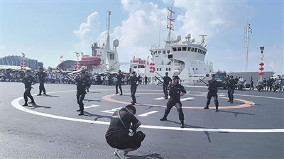 市南特巡警在表演警棍术。 刘卓毅 摄