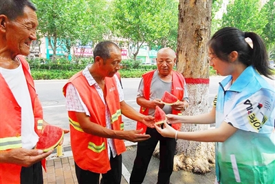 “在有关部门、爱心企业支持下,我们每年夏季开展‘送清凉、送西瓜’活动。”即墨区环秀街道团工委负责人洪燕表示,炎炎夏日,劳动者们始终奋战在一线,理应受到全社会的关爱。