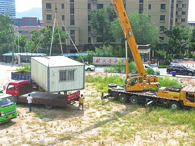 本报8月20日讯 在崂山区北涧圣水苑小区门口道路旁一处空地内,违规堆放有12个集装箱,部分居民利用集装箱私自开设小吃店,店内环境脏乱不堪,且为烹饪便利私自安装煤气罐,存在严重的安全隐患。8月17日,崂山区北宅街道综合行政执法中队出动吊车清理了这片“集装箱小吃店”。