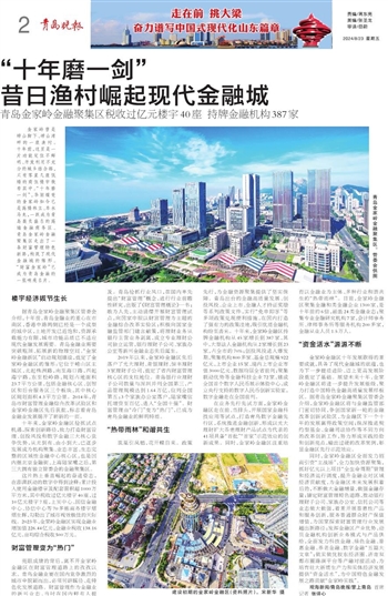 金家岭金融区十年发展取得的重要成就,具备了现代金融城的底蕴,也为下一步提质进阶、迈上更高发展阶段奠定了基础。展望未来十年,金家岭金融区将进一步提升发展能级,聚力打造中国特色金融高质量发展样板区。据青岛金家岭金融聚集区管委会介绍,金家岭金融区将与金融监管部门密切协同,争创国家新一轮的金融改革创新试验区,为金融区下一个十年的发展赢得政策空间;纵深推进契约型基金、金融司法协作等不同方向的改革创新工作,努力形成实践经验和创新亮点,输出过硬的改革案例,彰显金融区先行示范效应。