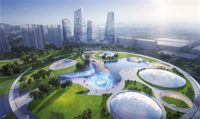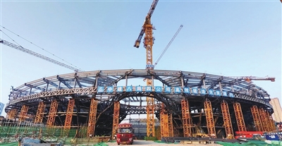 孙梦晓告诉记者,项目主体结构采用钢网筒与钢筋混凝土筒体混合结构,顶部展厅及会议区为“倒锥形空间网格结构支承筒+混凝土筒体混合结构体系”,整体结构通过编织钢网格,实现悬挑与漂浮的即视感,实现创享中心的建筑创意与结构突破。