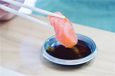 品尝了全市多家门店的三文鱼后,王晶发现,蘸料对于三文鱼最后的表现至关重要。她又专门请来了师傅传授熬制日式酱油的经验,每天早上,店里的师傅就开始熬制酱油,整个门店弥漫着浓浓的香味。王晶自豪地介绍:“现在很多人都冲着酱油找到我们店里来。”
