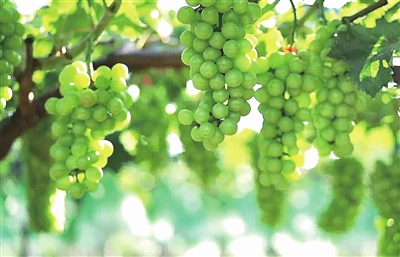 “我们严格控制产量,把每一穗结的葡萄限制在60粒以内。如果超出这个范围,口感就会受到影响。阳光玫瑰大概从10月开始采摘,持续到10月底。”五丰家庭农场总经理刘同胜说,“我们不用化肥,坚持用天然有机肥料,葡萄个头大,汁水多,口感甜。”良好的品质在市场上颇受欢迎,每年农场的葡萄进入盛产期,都会吸引不少游客争相来采摘。