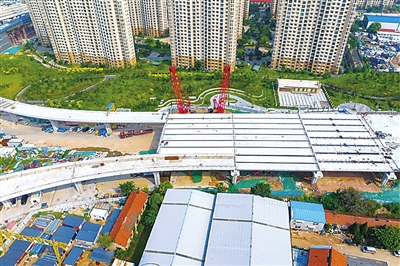 本报8月25日讯 随着最后一榀预制箱梁精准落位,重庆高架路工程关键节点——唐山路立交近日顺利完成全部预制箱梁架设任务,向着年底完工目标再进一步。