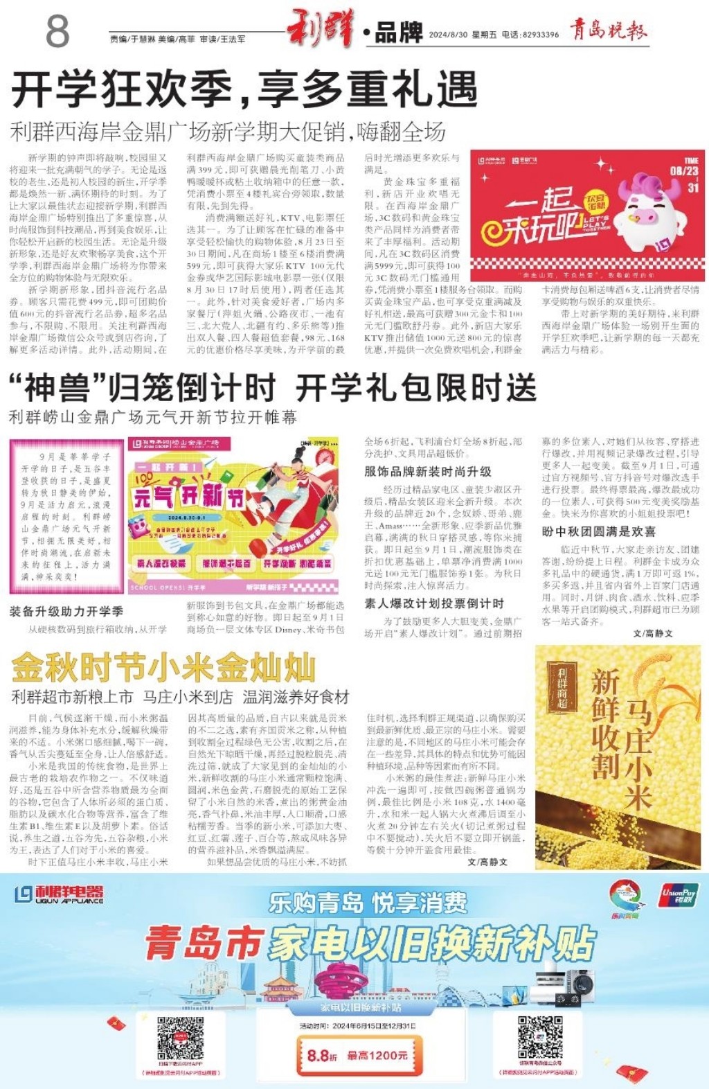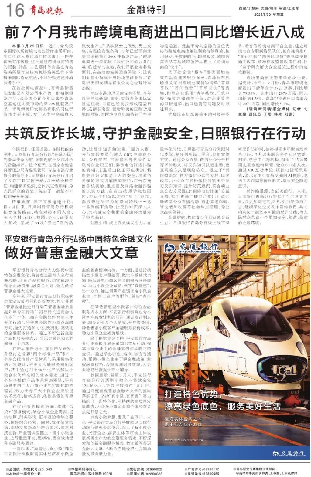 A01 头版 A02 走在前 挑大梁 奋力谱写中国式现代化山东篇章 A03 活力海洋之都 精彩宜人之城 A04 城事 A05 社会 A06 健康波报·一线 A07 利群 A08 利群·品牌 A09 利群·品牌 A10 利群·品牌 A11 金融特刊 A12 金融特刊 A14 金融特刊 A15 金融特刊 A16 金融特刊
